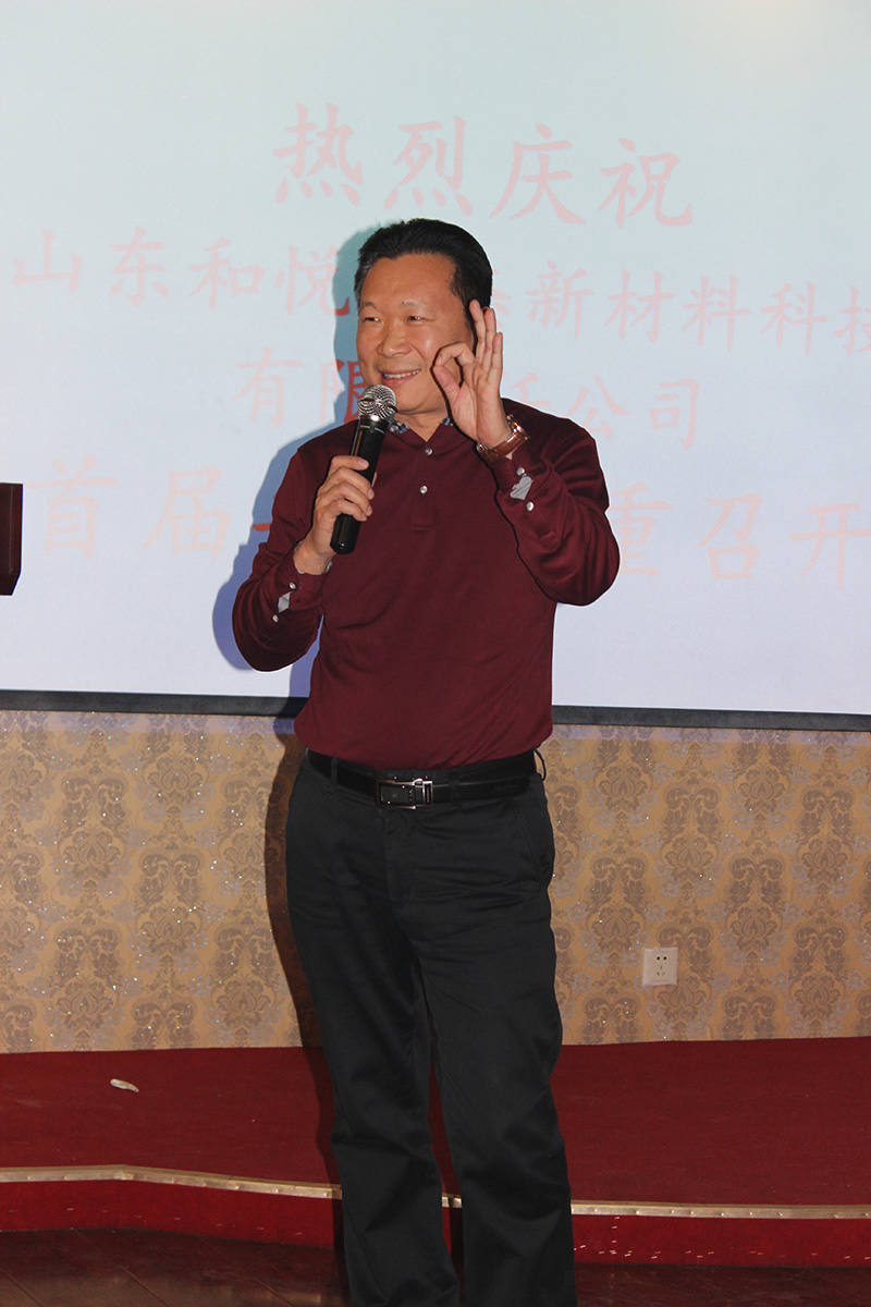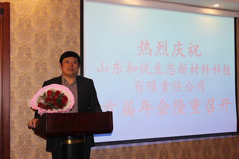2015年2月9日,山东和悦生态新材料有限责任公司迎来了公司成立来的的第一届年会,李亦军董事长在年会上代表公司股东对公司的员工表达了新年的祝福和寄语。